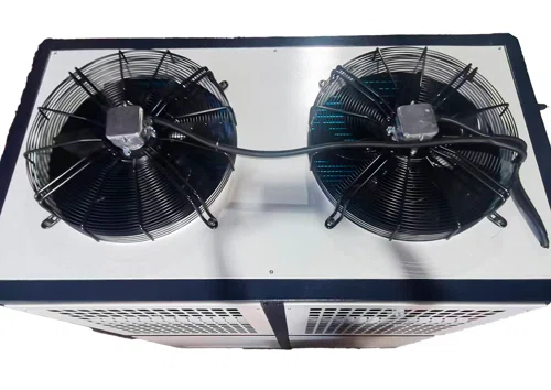 - Конденсатор — трубчато-ребристый теплообменник; воздух удаляет тепло и переводит хладагент из газообразного состояния в жидкое.