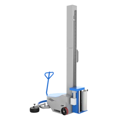 Мобильные паллетообмотчики предназначены для обмотки и упаковки коробок на поддонах в стрейч пленку. Особенность мобильных обмотчиков в том, что они малогабаритны и просто перевозятся одним человеком за ручку, как тележка. Удобно для тяжелых грузов. Вы вручную подвозите паллетоупаковщик к поддону, крепите пленку и включаете его. Машина автоматически начнет движение вокруг груза, заматывая его в пленку. Высота обмотки и время обмотки регулируются. По окончании работы ручного мобильного паллетоупаковщика вы просто перевозите его к следующему паллету. Отличаются такие роботы обмотчики высотой обмотки, временем работы - они работают от аккумуляторов и другими более мелкими опциями.