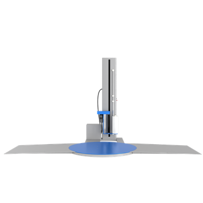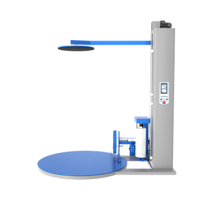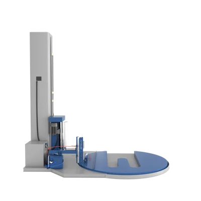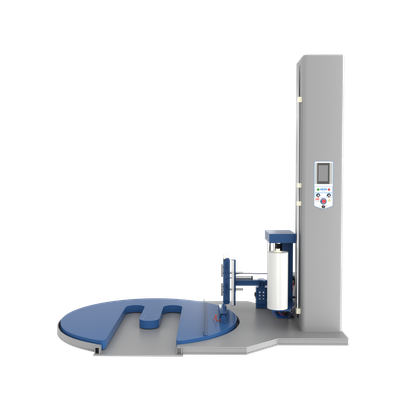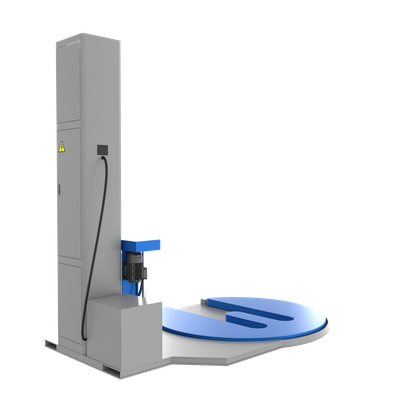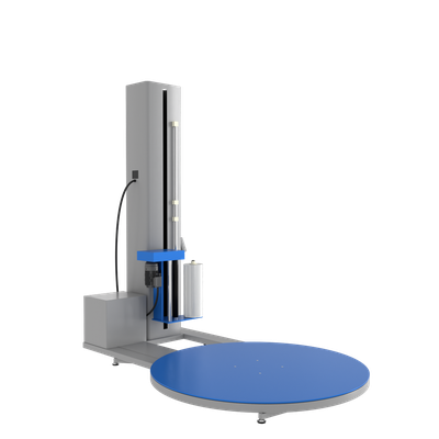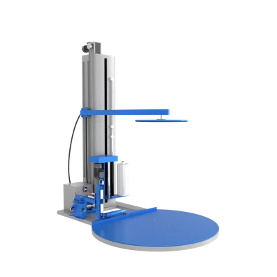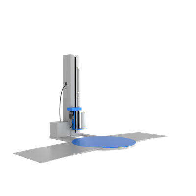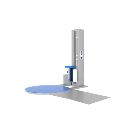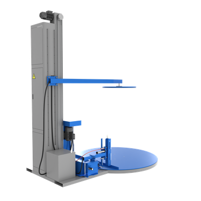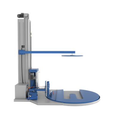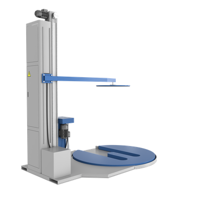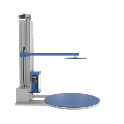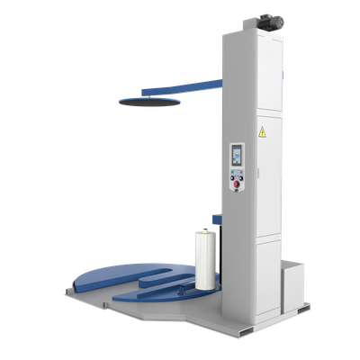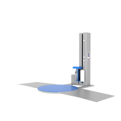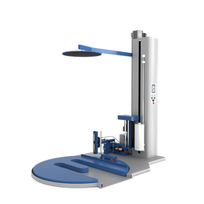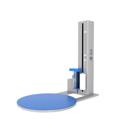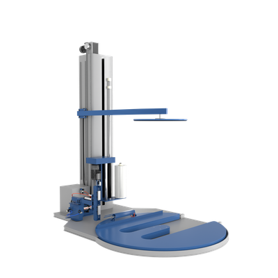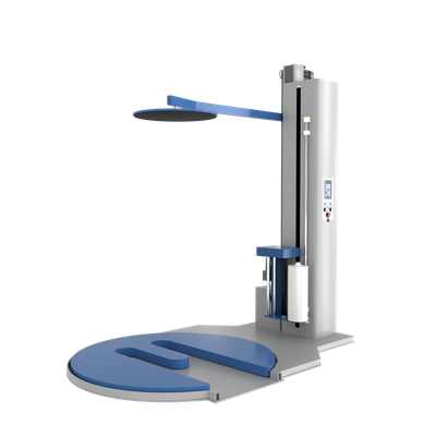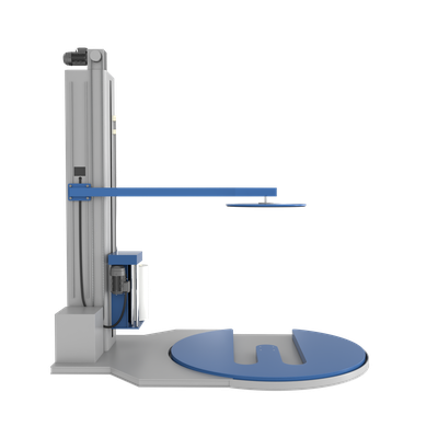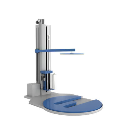 Платформа будет вращать паллет заданное количество циклов. Бобина с пленкой фиксируется на специальной рамке. Мобильные полуавтоматические системы оснащены горизонтальной поворотной балкой сверху, где закрепляется рамка с рулоном пленки; она двигается вокруг стопки товаров и упаковывает его. Оборудование компактное и может быть легко перемещено на новое место работы.