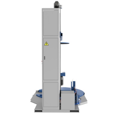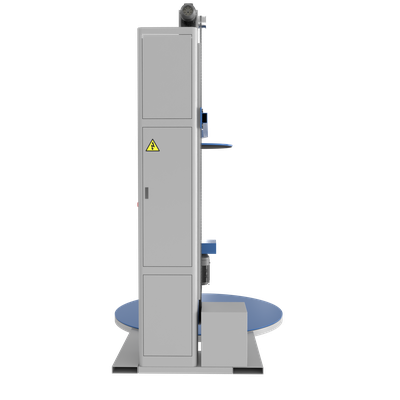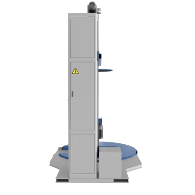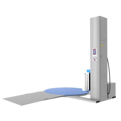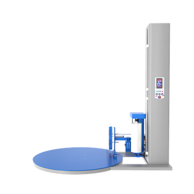Что касается полуавтоматического паллетоупаковщика, то он требует присутствия оператора, хотя его производительность почти не уступает полностью автоматизированным системам. Этот вид техники подразделяется на стационарные и мобильные модели. В случае со стационарными нужно поместить поддон на поворотную площадку, зафиксировать конец стрейч-пленки и активировать механизм.